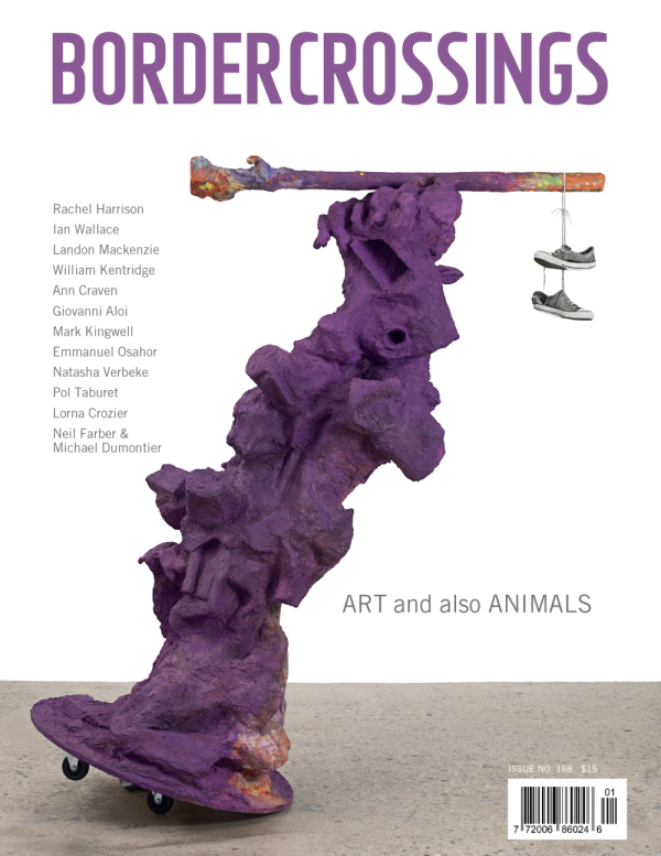 Border Crossings est un magazine publié trois fois par année à Winnipeg. Avec comme éditrice Meeka Walsh, le magazine étudie l'art et la culture contemporaine par un mélange d'articles, de critiques, d'interviews et de portfolios de dessins et de photographies. Border Crossings occupe une place vitale au centre géographique du continent nord-américain et de là viens son point de vue.