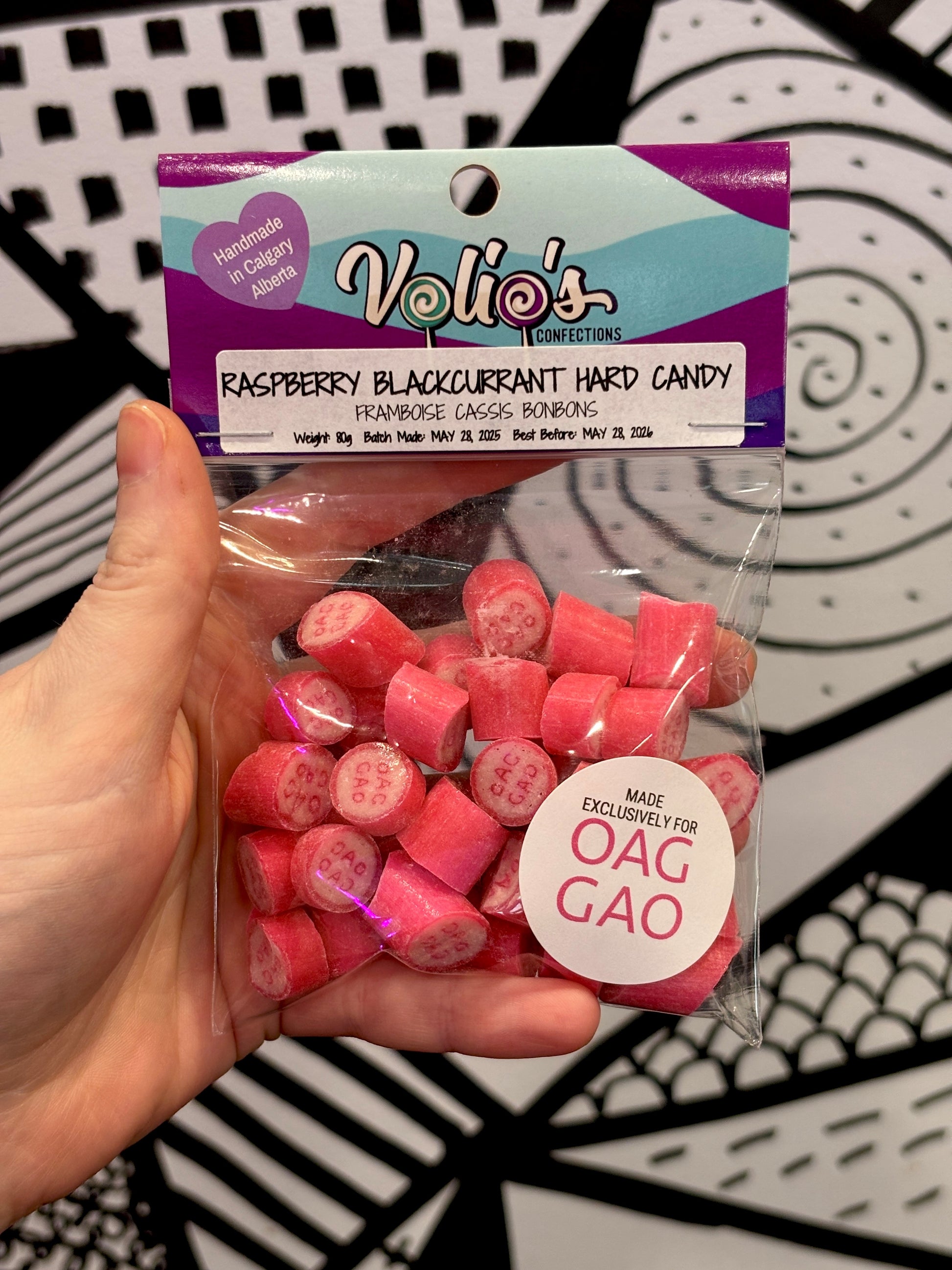 Fait à la main exclusivement pour la Galerie d'art d'Ottawa à Calgary (Alberta) par Volio's Confections.