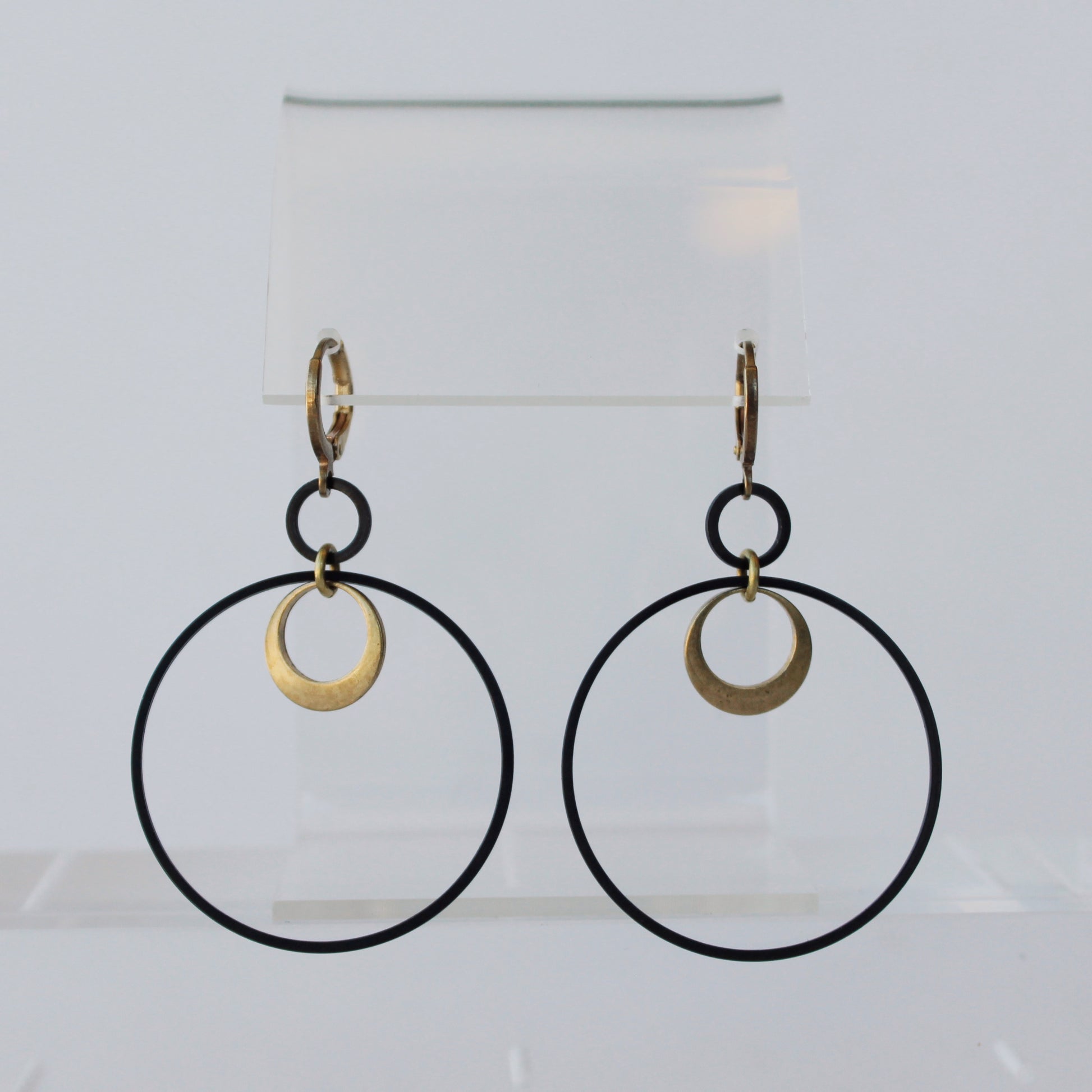 Boucles d'oreilles en laiton oxydé. Les boucles d'oreilles modernes idéales. Fabriquées à la main par la joaillière Lisa Wilson, basée à Ottawa.